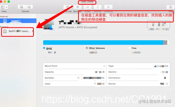 五、在电脑上插入新购买的移动硬盘,磁盘工具界面的磁盘列表会显示新插入的移动硬盘。