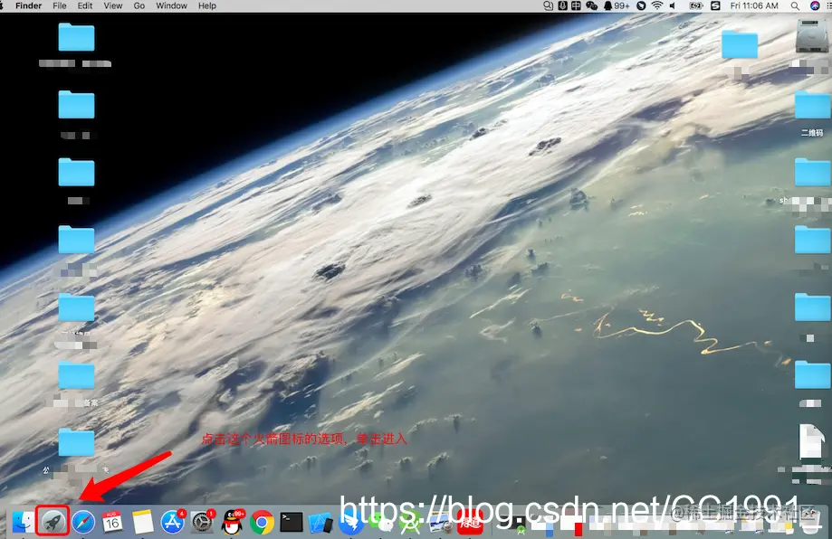 二、找到电脑首页底部的菜单栏里面的“火箭图标”,就是“Launchpad”这个选项,点击进入。