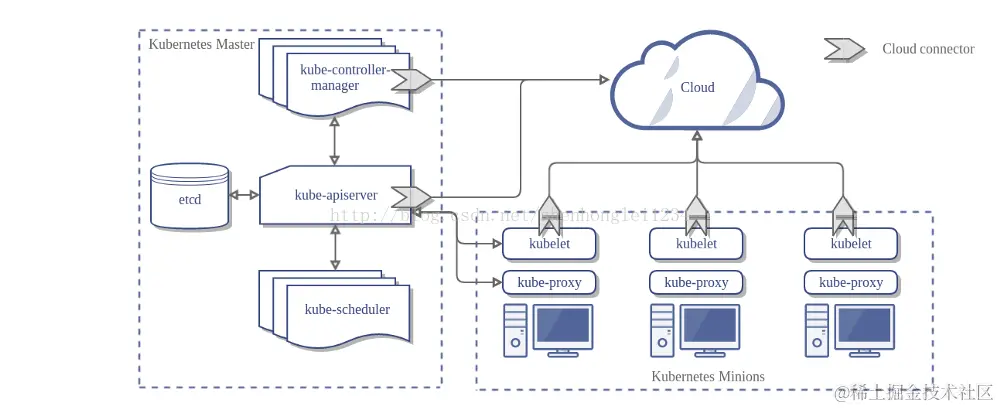 Here’s the architecture of a Kubernetes cluster without the cloud controller manager