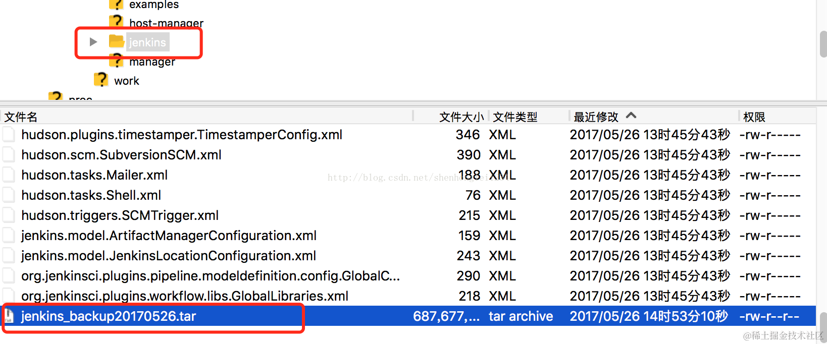 上面意思是,将jenkins目录里,所有文件压缩在jenkins_backup20170526.tar这个包里。
