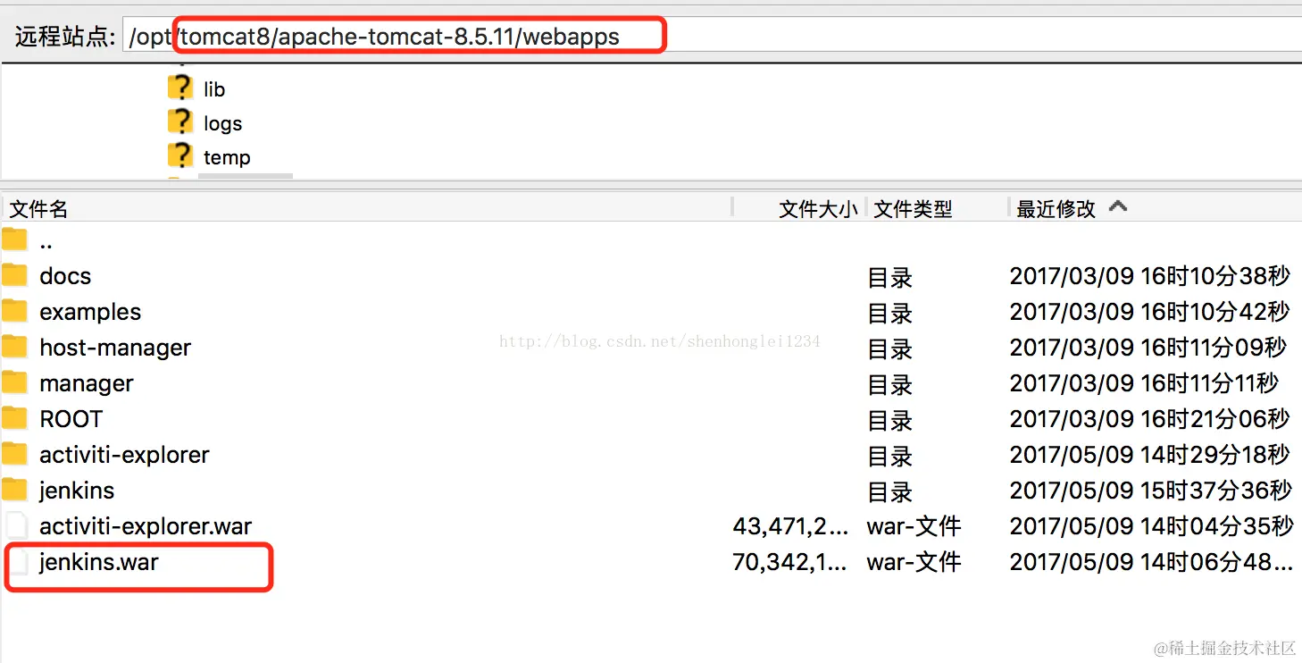 将jenkins.war部署到tomcat的目录如下: