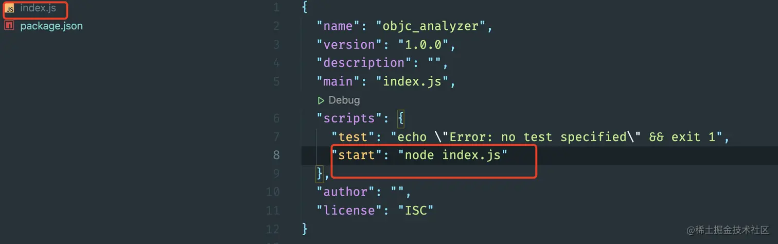 初始化一个Node.js项目,生成index.js入口文件,添加一个启动脚本命令,使用Visual Code打开看上去是这样的,最后它看上去是这样的: