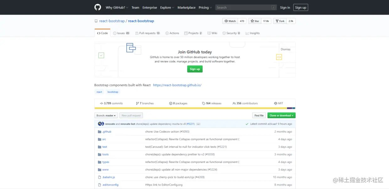 - 仓库:github.com/react-bootstrap/react-bootstrap