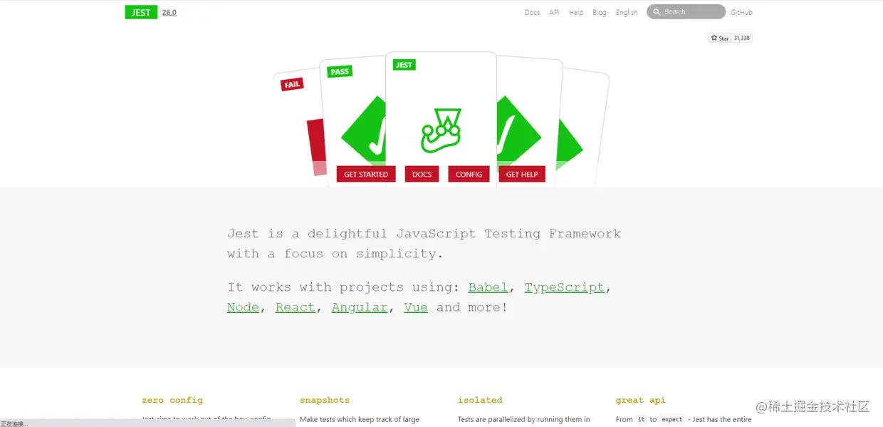 - 支持Jest测试框架