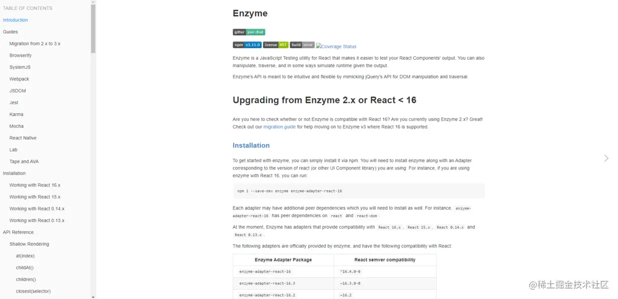 使用React 16时,请使用以下方法安装酶: