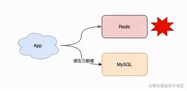 但是,突然有一天,你的 Redis 因为某些原因宕机了,这时你的所有业务流量,都会打到后端 MySQL 上,这会导致你的 MySQL 压力剧增,严重的话甚至会压垮 MySQL。