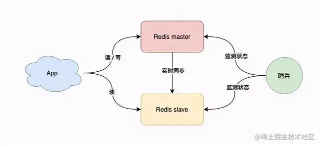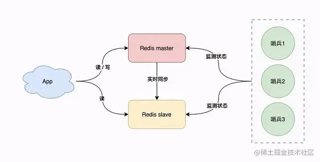 但是这样也有问题,手动提升实例上来,需要人工介入,人工介入操作也需要时间,我们开始想办法把这个流程变得自动化,所以我们又引入了「哨兵」集群,哨兵集群通过互相协商的方式,发现故障节点,并可以自动完成切换,这样就大幅降低了对业务应用的影响。