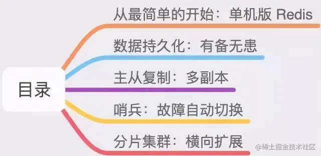 最后,我们把关注点聚焦在如何支撑更大的写流量上,所以,我们又引入了「分片集群」来解决这个问题,让多个 Redis 实例分摊写压力,未来面对更大的流量,我们还可以添加新的实例,横向扩展,进一步提升集群的性能。