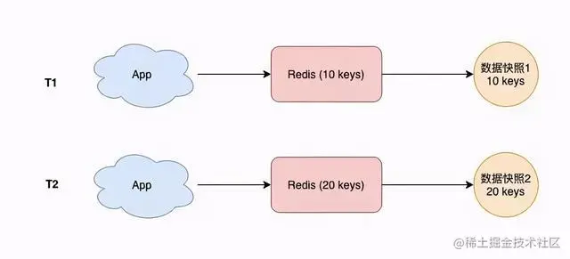 - 此时你拿一个相机给这个水杯拍一张照片,拍照的这一瞬间,照片中记录到这个水杯中水的容量,就是水杯的数据快照