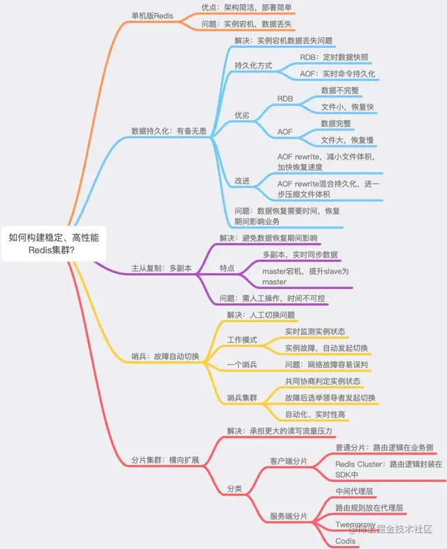 好了,我们来总结一下,我们是如何一步步构建一个稳定、高性能的 Redis 集群的。