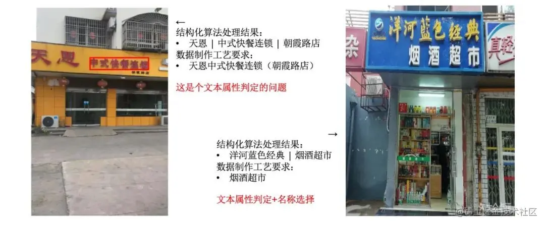 另外,高德也引入了牌匾的语义分割,确定每个牌匾独立的边界。有边界的情况下,主名称是唯一的。