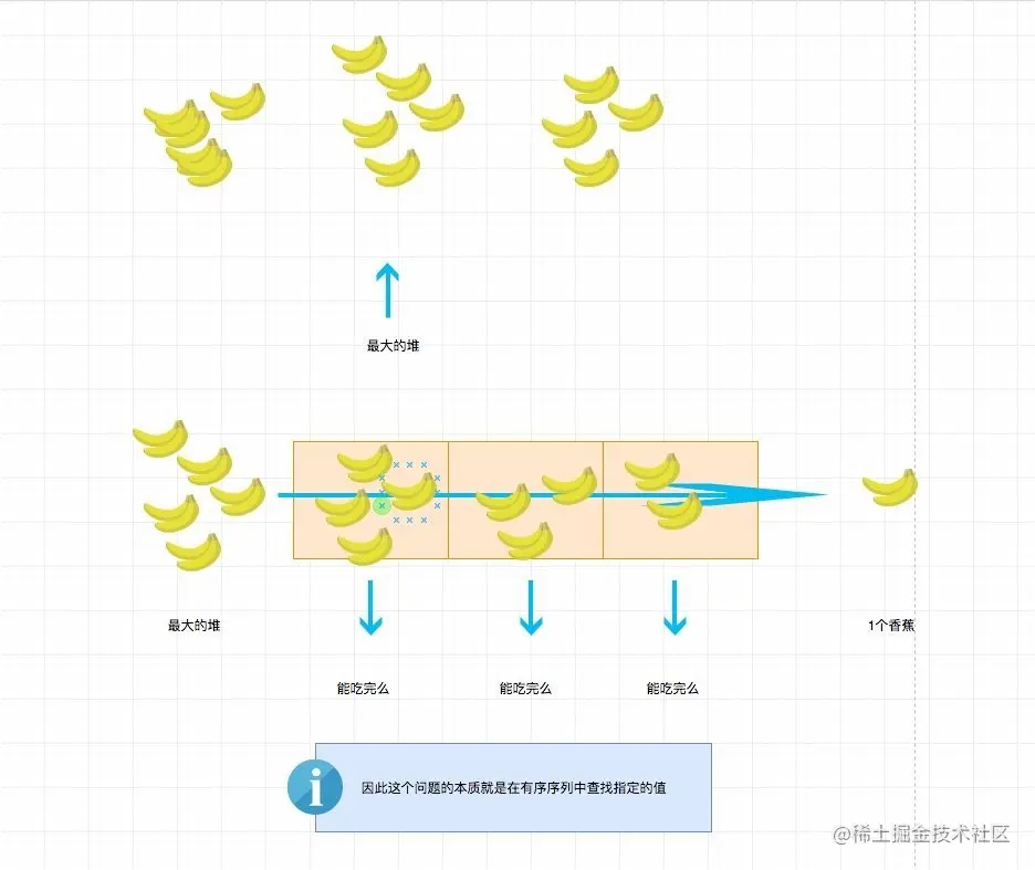 一个问题能否用二分解决的关键在于检测一个值的时候是否可以排除解空间中的一半元素。比如我前面反复提到的如果 x 不行,那么解空间中所有小于等于 x 的值都不行。
