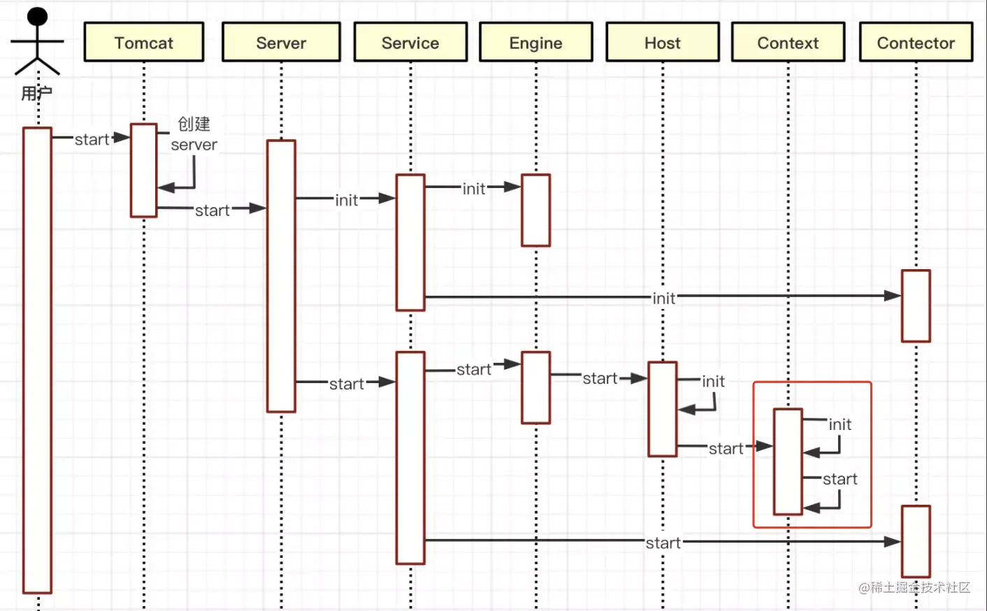 可以看到, Context由Host启动,在Host#start(...)方法中,会调用Context#init(...)与Context#start(...)方法,不过Context#init(...)并没有做什么实质性的工作,我们重点关注Context#start(...).