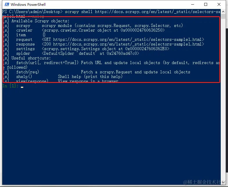 Selector选择器是一个可以独立使用的模块。直接导入模块就可以实例化使用。我们使用Scrapy shell来模拟请求实现命令行交互模式。