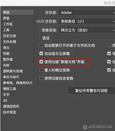 2.将其中的「使用旧版新建文档界面」勾选,然后点击「确定」按钮即可!