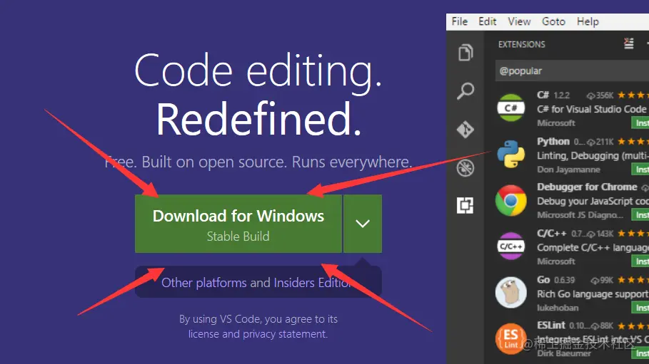 代码编辑器有很多可供选择,比如notepad++、Sublime Text,这里我们选择功能强大的Visual Studio Code(vscode)作为主力编辑器。