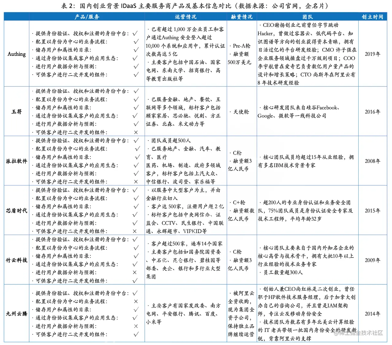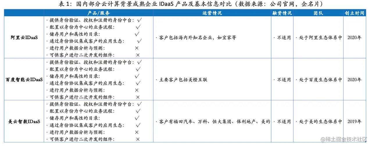 ◼ 国内 IDaaS 主要服务商对比