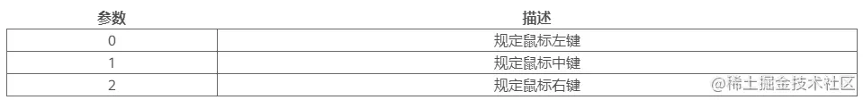 button 事件属性返回一个整数,用于指示当事件被触发时哪个鼠标按键被点击。