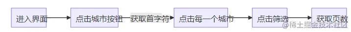我们在点击城市按钮后出现了城市列表 获取城市首字符,在我们点击第三步筛选后我们获取最大页数