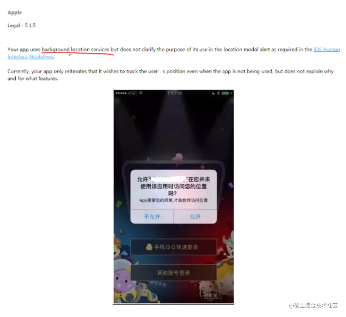 【案例6】游戏F因使用后台服务(位置)但未在info.plist进行声明,导致被拒: