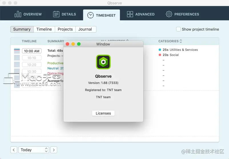 Qbserve是一款自动私人时间跟踪器,可帮助您提高工作效率。它通过智能地观察活动应用程序,为您提供关于您花时间的方式的即时答案。所有跟踪的信息都会私自储存在您的机器上。