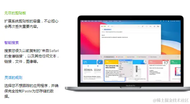 Mac中非常实用的一款剪贴工具,操作简单,功能实用。它支持包括文字、文件和图片等多种类型格式粘贴。并保留原格式,也可以复制纯文本,按照不同的格式进行分类。粘贴会自动保留您复制的所有内容,而不管其格式如何,以便您可以快速访问过去复制的内容。