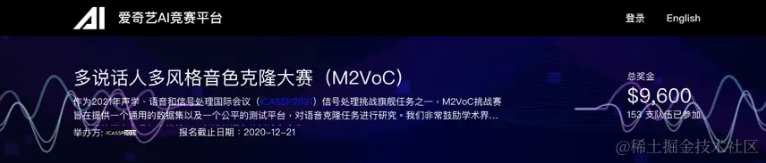 2020年,爱奇艺联合多家单位在ICASSP2021举办多说话人多风格音色克隆大赛——M2VoC,旨在提供一个通用的数据集以及一个公平的测试平台,对语音克隆任务进行研究。