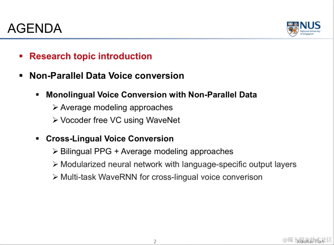 最后一位组委会嘉宾是来自新加坡国立大学的研究员田霄海,他带来了题为《Non-parallel Data Voice Conversion》的演讲。
