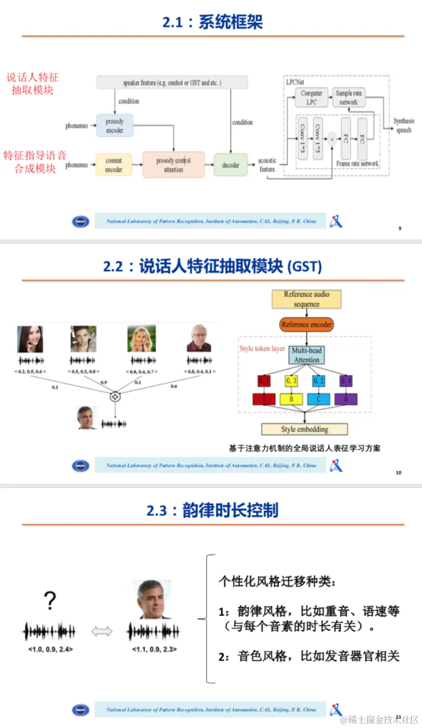 来自中科院自动化所的博士生汪涛所在队伍提交的方案在这次竞赛的少样本赛道 (开集)以及极少样本赛道 (闭集)中,都获得了top2排名的好成绩,他在报告会现场分享了题为《个性化语音合成风格迁移》的演讲,就比赛方案的系统框架的具体问题,比如说话人特征抽取、韵律时长控制、说话风格相关参数的自适应进行了详细论述。