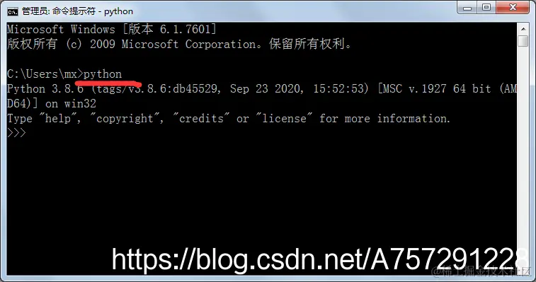 首先输入python进入python命令的交互界面: