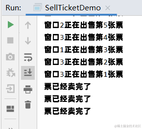 //t1抢到了CPU的执行权,在控制台输出,窗口1出售1张票