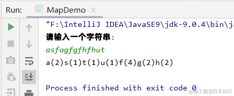 - 如果返回值不是null:说明该字符在HashMap集合中存在,把该值加1,然后重新存储该字符和对应的值
