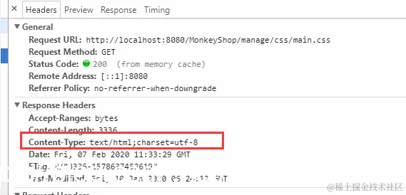 我在查看请求到的CSS文件的请求头时发现这些CSS文件返回的类型都是text/html类型。