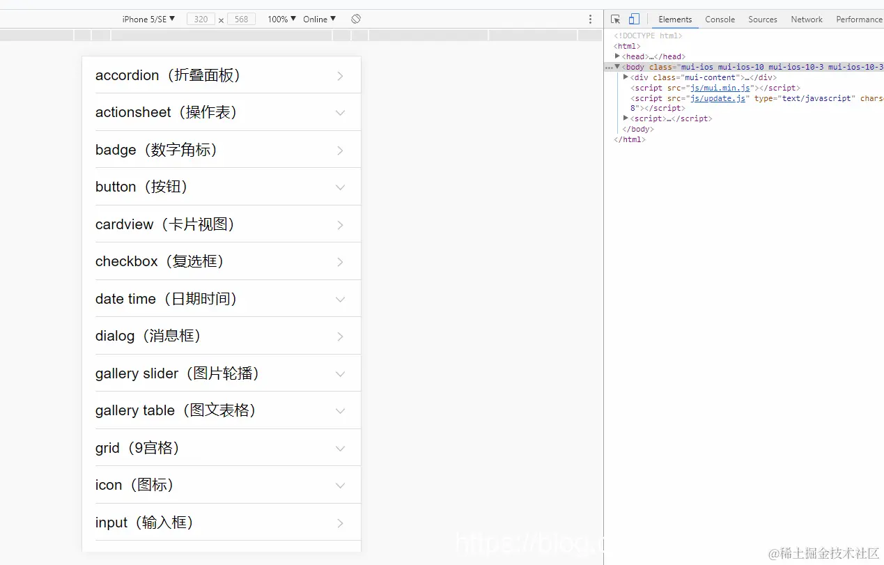 使用MUI的话需要从examples中寻找合适的样例,或者从官方文档中寻找样式,和bootstrap类似