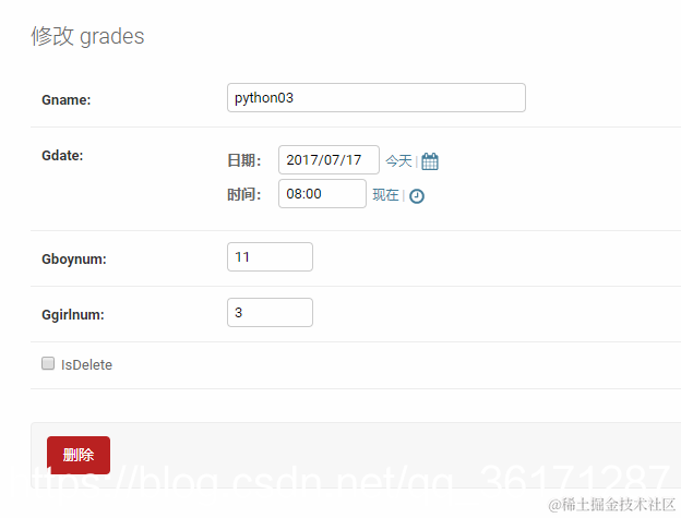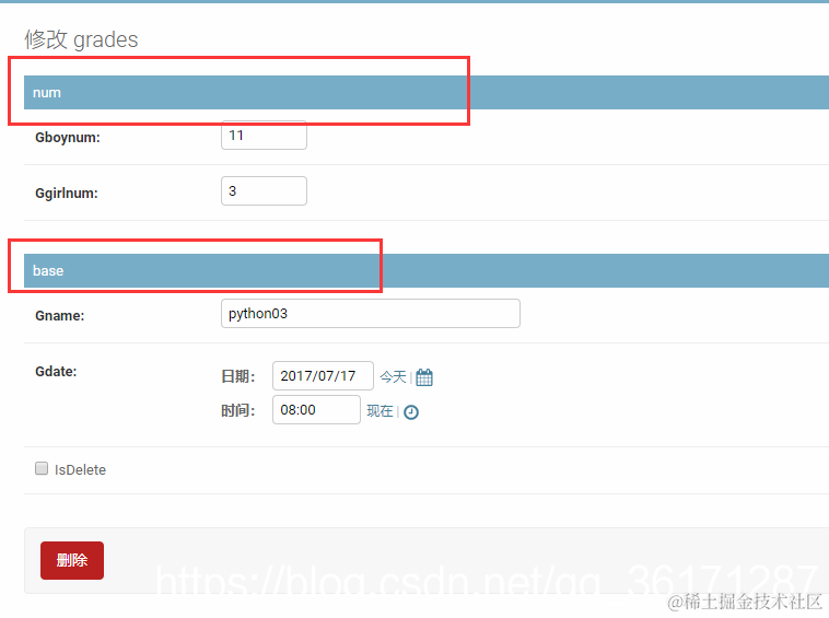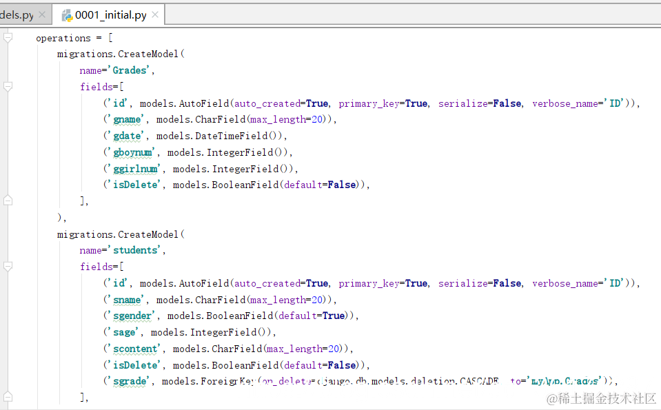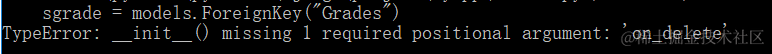 sgrade = models.ForeignKey('Grades',on_delete=models.CASCADE) #班级是外键,关联Grades类