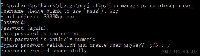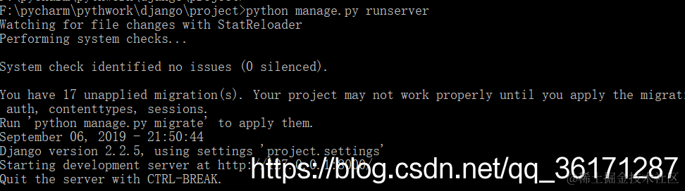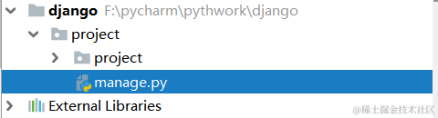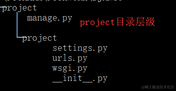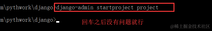 打开黑屏终端进入到上一步创建的目录下,输入django-admin startproject project