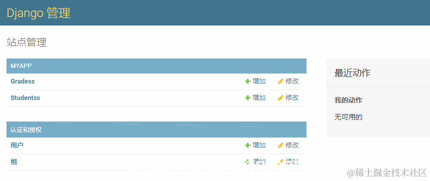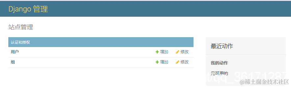 创建好了之后运行服务器,进入http://127.0.0.1:8000/admin中