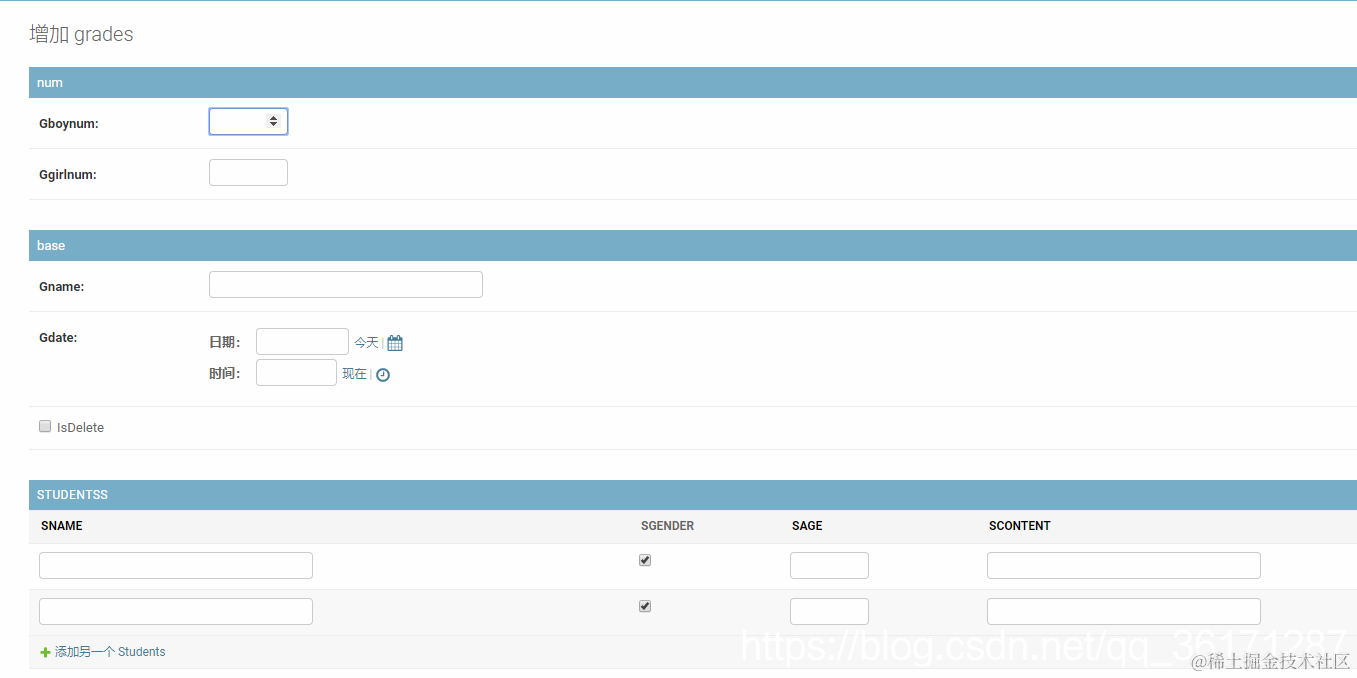 刷新页面,点击创建班级时会在下面要填入两个学生的信息