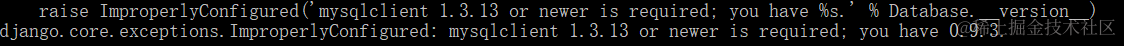 raise ImproperlyConfigured('mysqlclient 1.3.13 or newer is required; you have %s.' % Database.__version__)