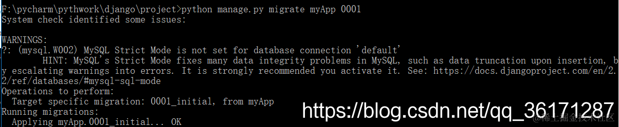 因为刚刚的命令仅仅是在migrations下生成迁移文件,还未迁移