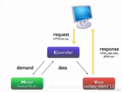 - 通常控制器负责从视图中读取数据,控制用户输入,并向模型发送数据