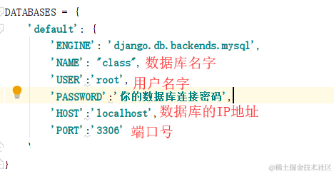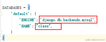 将settings.py中DATABASES里面的内容进行修改,NAME改为数据库的名字
