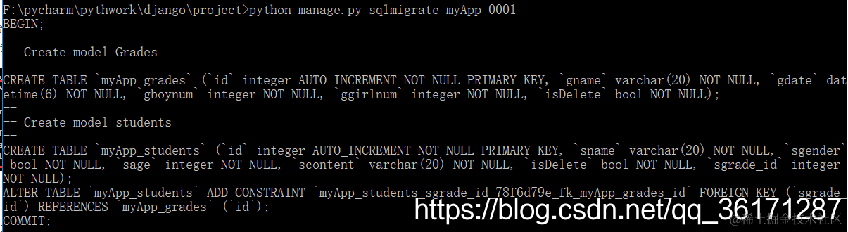 使用python manage.py sqlmugrate appname 文件名对刚刚具体执行了什么语句进行查看