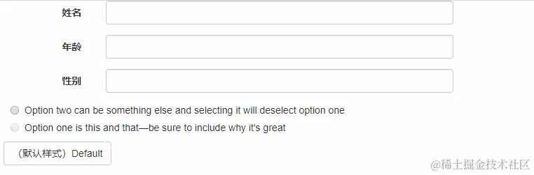 <button type="button" class="btn btn-default">(默认样式)Default</button>