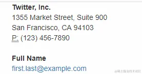 让联系信息以最接近日常使用的格式呈现。在每行结尾添加 <br> 可以保留需要的样式。