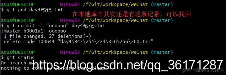 然后使用git reset --hard 局部索引号 就能找回文件了