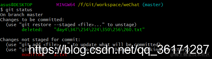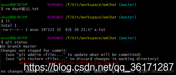 命令:git reset --hard 指针位置指向历史记录 (如果删除操作尚未提交到本地库,指针位置就用HEAD)