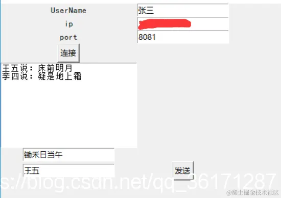users[infolist[0]].send((username.decode('utf-8')+"说:"+infolist[1]+"\n").encode('utf-8'))