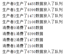4个生产者在生产数据 3个消费者将生产的数据从队列中取出