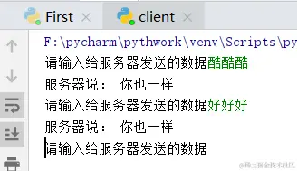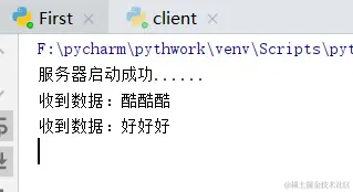 运行结果:first是服务器端